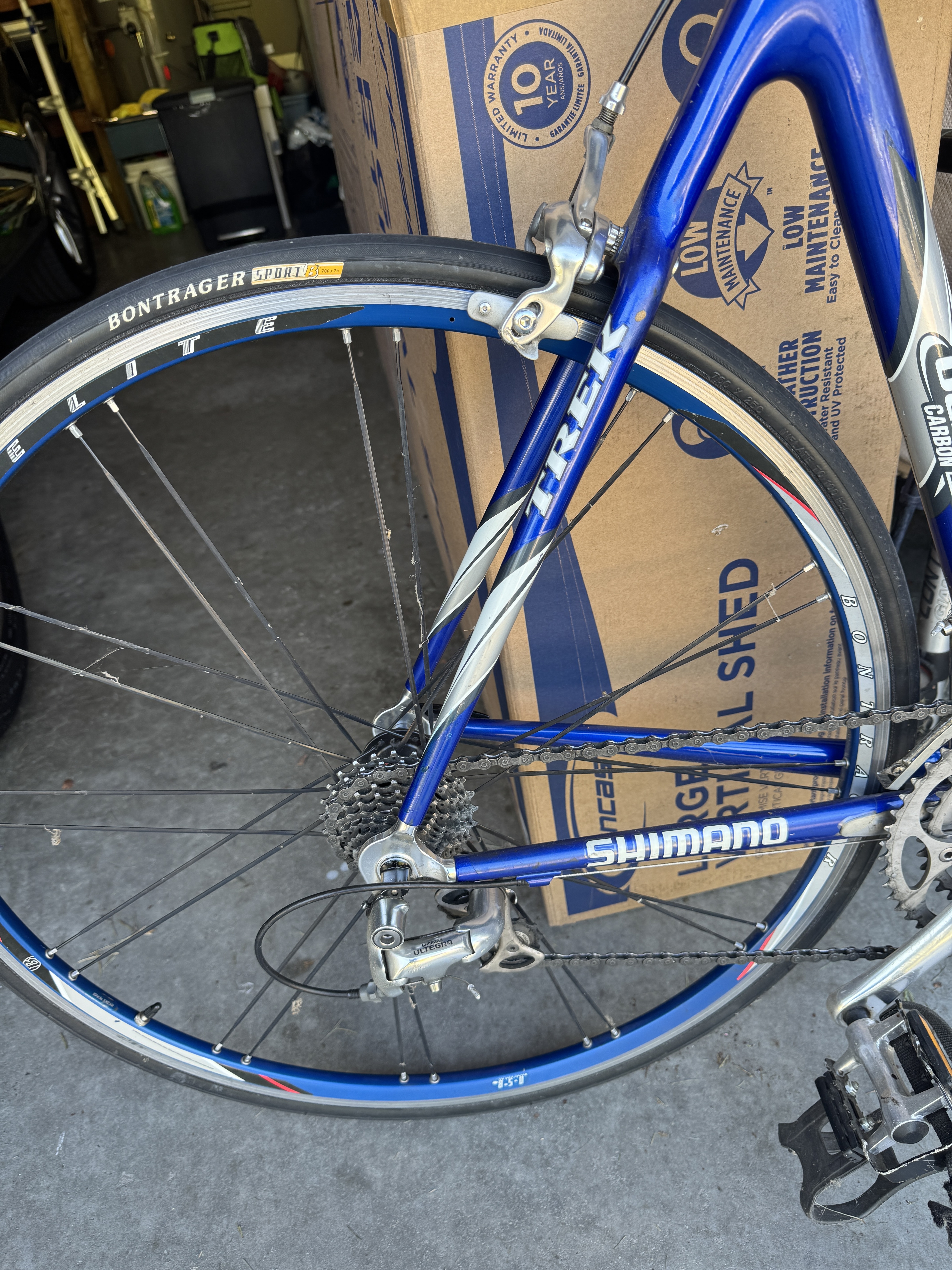 Trek, OCLV carbon fiber Race Lite. size 56cm. Manual shifters, rim brakes, Shimano Ultegra shifter set. $500. Interested - call 859-333-7771 and ask for Ora.